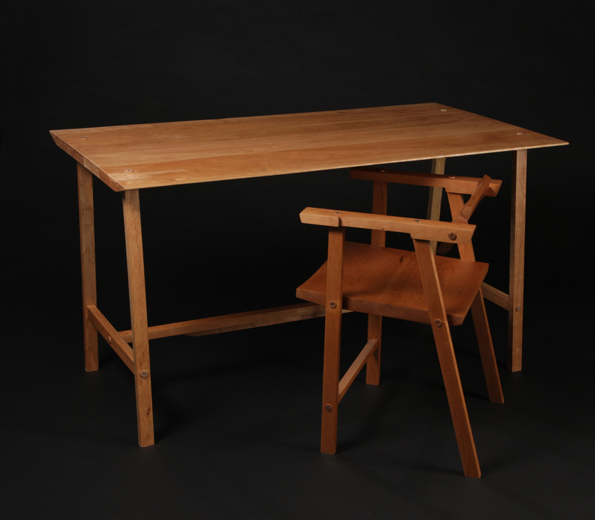 The unpredictable human hand is often masked by a set of rules and best practices seen in traditional furniture making. An endless parade of precision tools and instrumentation at one’s disposal in the name of quality can lead to a lack of evidence of the artisan’s hand.The Split series uses steel wedges typically employed to set the head of a hammer to the wooden handle; a utilitarian and brutish example of joinery. After all the individual parts are milled, assembly is performed by aggressively driving the wedges into exposed tenons, splitting the wood and putting the joint under permanent tension.